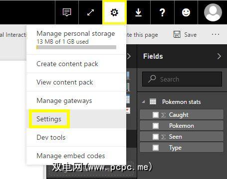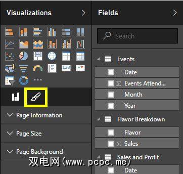 为确保Cortana可以找到您的工作,您需要设置格式已设置的报告根据她的规范在Power BI客户端中单击所需的数据集,然后单击画笔图标。