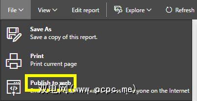 下一步,使用工具栏中的图标保存报告。转到左侧栏中报告部分的条目,导航至文件>发布到网络,然后按照以下说明进行操作-屏幕。
