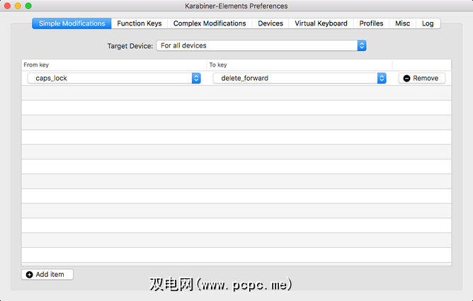我从没真正使用Caps Lock,所以几年前我就开始将其用作Delete键。使用Karabiner,我可以将其绑定,以便按Caps Lock可以触发Delete操作。您可以将 any 键直接绑定到任何 other 键,包括修饰键,箭头,数字键盘,媒体键等。