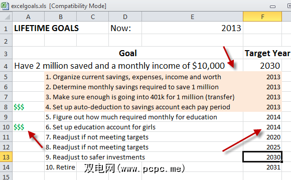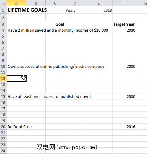 如果您准备认真致力于实现那些如果您有,该坐下来把它们写下来了。这将注意力重新引入您的日常生活。它为您提供了处理那些看似平凡而毫无意义的任务的理由,因为您知道该任务只是迈向大目标的一步。我认为,尽管有其他所有用于目标管理的内容,但Microsoft Excel仍然是实现此目的的最佳工具。