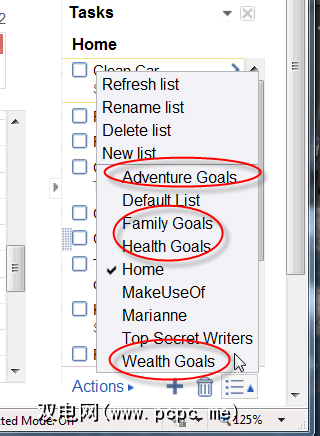 一旦创建了所有这些“里程碑"表,目标管理系统的下一步就是将这些任务分配给您的待办事项清单。无论我做了什么工作清单,我都绝对会回到Google Tasks。因此,我决定也将其用于此项目。基本上,您会为在项目开始时定义的每个核心价值创建一个新列表。