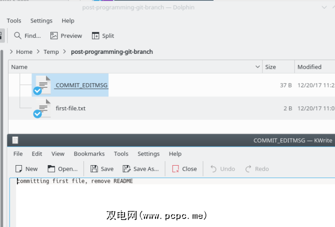refs目录保留分支的记录,而不保留分支本身的记录。至少不是您当前正在使用的分支。这些文件保存在工作目录中(在上例中为“〜/ Temp / post-programming-git-branch" ),因此您可以通过常规方式访问它们。为此,我们在工作目录即.git目录的 outside 中创建了我们的第一个文件(名为“ first-file.txt")。使用前面的git简介中的可信赖命令检查此内容: