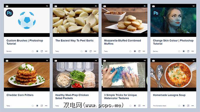 InoReader提供了多种视图选项,但Card View确实适合视频格式,如下面的屏幕快照所示。