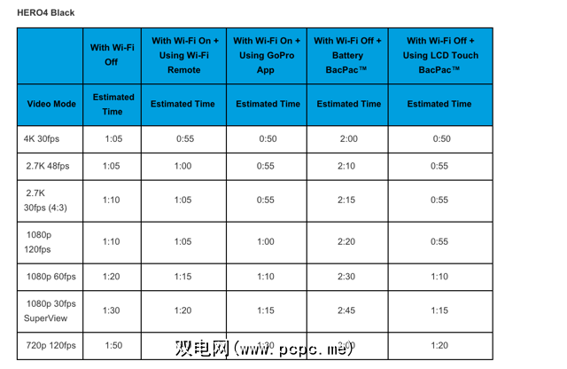 存储和电池寿命,iPhone可以录制惊人的大量视频。根据HERO4电池寿命表,您可以指望在不使用额外电池的情况下录制大约两个小时的视频。我测试了自己的手机,看看录制视频如何影响电池寿命,录制一小时后下降了约40%。