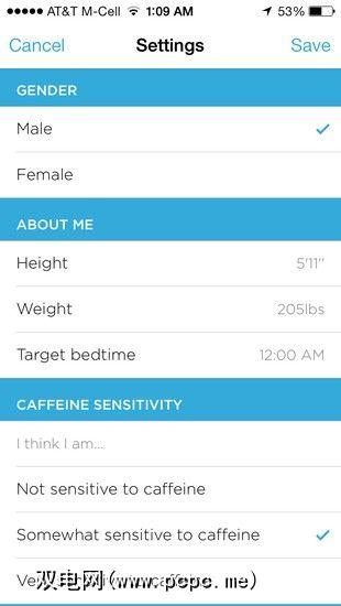 首次打开该应用程序时,它将询问您一些问题,例如您的年龄,性别,身高和体重。这样做是为了让您了解咖啡因将如何与您的身体相互作用。当然,咖啡对每个人的影响都不同,但是让应用了解更多有关您的信息将使它变得更加准确。