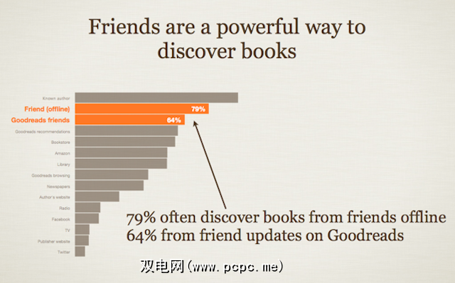 除了推出Kindle,亚马逊还收购了Goodreads,这是一个面向书迷的社交网络,充当推荐引擎。只要您在Kindle上完成一本书,它就会在Goodreads目录中标记为已读。随着时间的流逝,这会建立您的读者资料,让Goodreads推荐您喜欢的书。