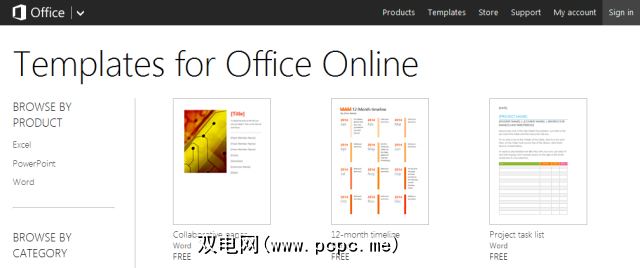 您可以按平台(Word,Excel或PowerPoint)或类别浏览模板。它们将被保存到OneDrive并在Office Online中打开。在这里,您可以编辑模板并将模板下载到计算机。您将需要具有Microsoft Office帐户才能访问这些官方模板。