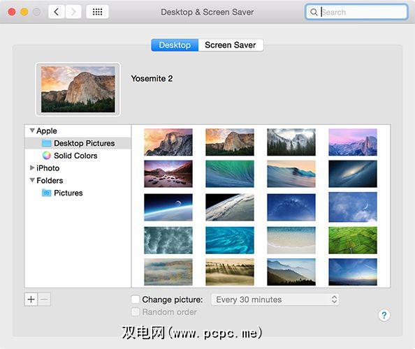 创建新的在桌面上,您可以使用标准的系统偏好设置>桌面和屏幕保护程序菜单选择墙纸。即使您重新排序桌面,您选择的墙纸也将保持不变。