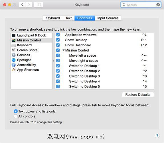 转到系统偏好设置>键盘>快捷方式 Control +数字键的形式,具体取决于您要快速访问的桌面,尽管您可以根据需要更改快捷方式。