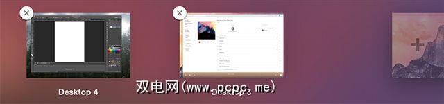 要添加新桌面,您可以可以将鼠标悬停在右上角,或按住 Option 键立即将其显示出来。当您单击此按钮时,您将看到另一个桌面添加到列表中,然后单击它将直接转到该列表。