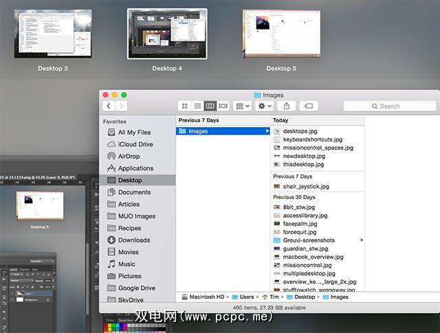 想象一下,您打算购买一台您的MacBook的第二个显示器-插入时将有两个台式机,使您可以同时放置窗口和工作。这就是OS X上多个桌面的工作方式,除非您不需要其他显示器即可利用。
