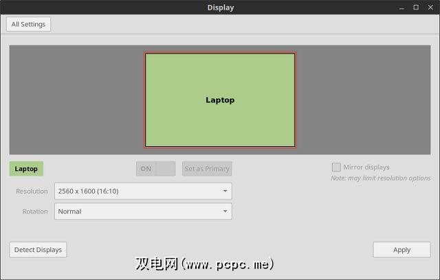 如果您使用的是笔记本电脑,并且希望使用外部显示器而不是笔记本电脑随附的显示器,则可以轻松选择内部显示器并将其关闭,以便图形芯片如果您不打算使用像素,则不必浪费资源将像素推入内部显示器。只需单击内部显示屏(在两个或多个可用显示屏中,如果您的内部显示屏仅是显示屏,则不起作用),然后单击 On / Off (开/关)位于显示选择区域和“分辨率"下拉菜单之间的“ strong"开关。