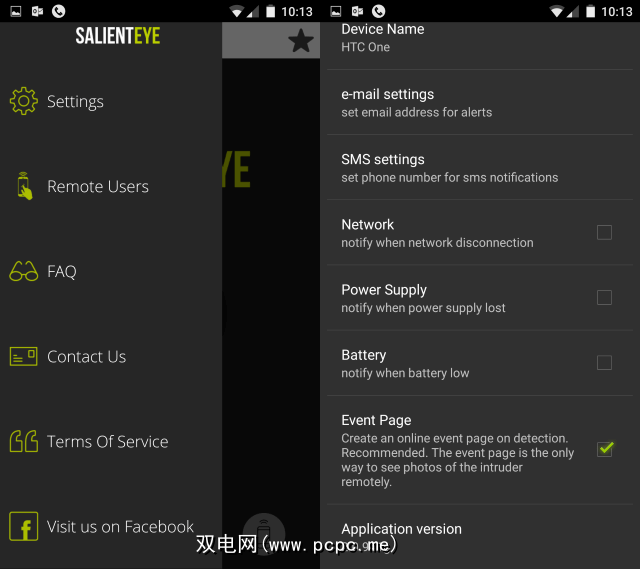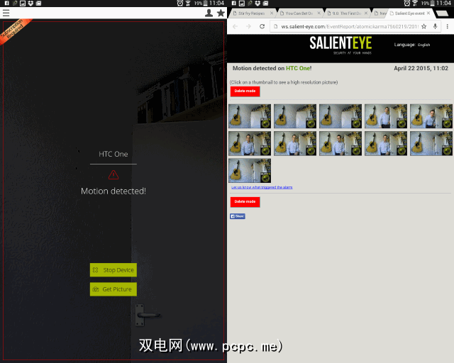 Salient Eye(可从Google Play免费获得)(计划使用iOS版本,有关更多信息,请参见www.salient-eye.com),但不能提供安全摄像机应用程序所期望的常规IP网络摄像机功能。相反,该应用程序会捕捉照片并在检测到运动时发出很大的警报。然后将图像保存到您的设备,您可以指定要将其发送到的电子邮件地址或SMS号码。