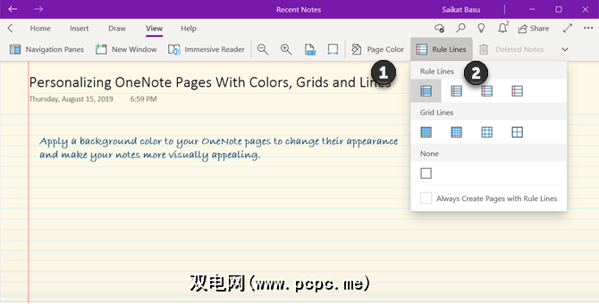 使用不同的颜色,规则线和网格根据其内容类型个性化您的OneNote页面。