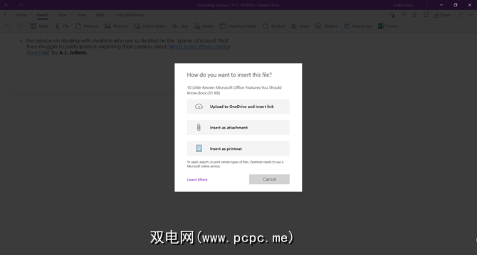 适用于Windows 10的OneNote还具有灵活的方式来处理附件。它们可以位于您的桌面或OneDrive上。