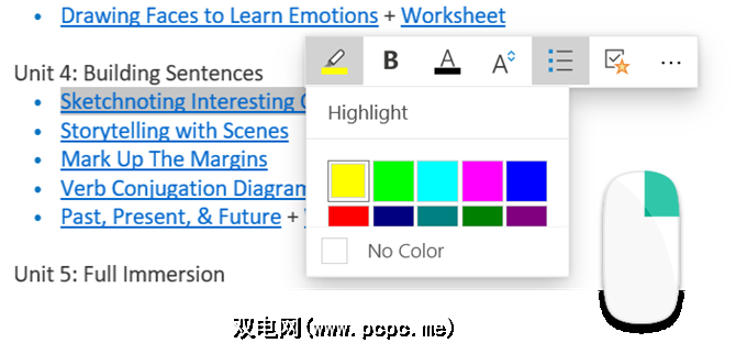 在数字工具诞生之前,有一支不起眼的荧光笔。 OneNote为您提供多种荧光笔颜色供您选择。并具有不同的厚度。您可以选择其他颜色来标注学习材料或对学习材料进行颜色编码。