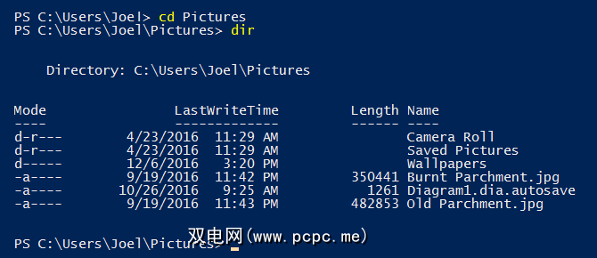 您在命令提示符中使用的大多数常见命令都可以在PowerShell中使用。在幕后,PowerShell实际上具有内置的cmdlet等效项,这些脚本的编写功能与这些命令完全相同,但是使用别名将旧命令名“连接"到新cmdlet。