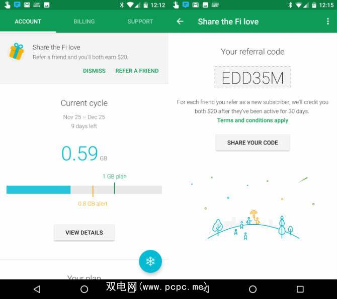 该应用提供了六个字符的代码,您可以将其发送给朋友。一旦有人注册Project Fi并保持活跃状态30天,你们俩都将获得$ 20。您最多可以推荐十个人,他们必须在2017年1月11日之前接受邀请。请注意,这不适用于Project Fi的新团体计划。