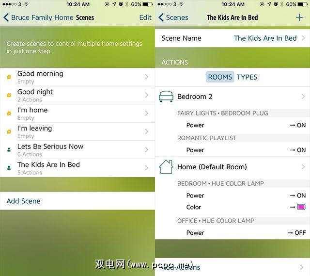 最后,我们将使用Elgato Eve应用程序或您首选的HomeKit管理器制作一些“场景"。用HomeKit的话来说,一个场景可以由任意数量的附件和这些附件的命令组成。