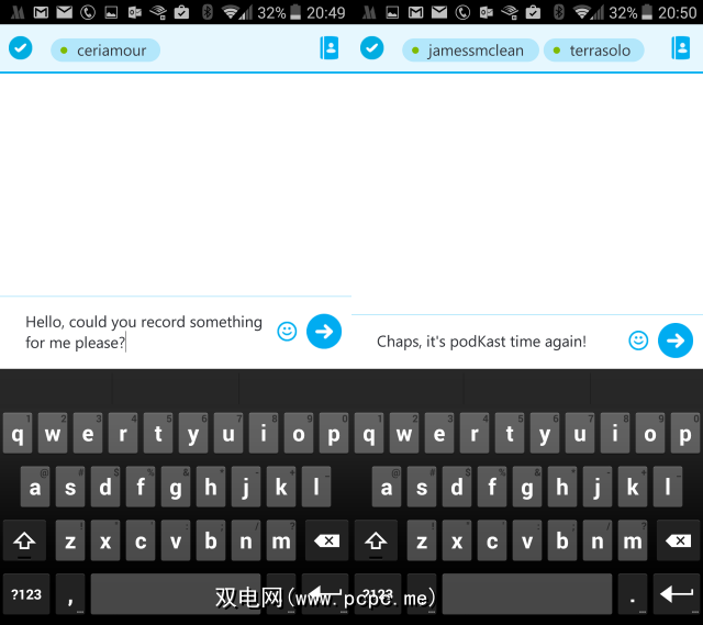 以及使用Skype拨打电话的同时,您还可以使用该应用向与Skype帐户联系的人发送消息。这对于安排电话或进行简短的文本聊天很有用,并且可以添加多个收件人进行小组讨论。