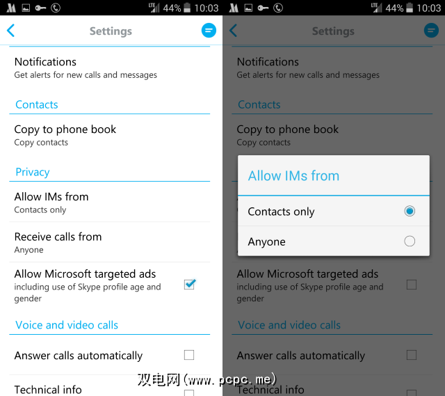 您可以通过打开菜单并选择设置来轻松阻止这种行为对您的影响。强>。向下滚动到隐私部分,并确保将允许来自的IM 设置为仅联系人。在此之下,您可能还想通过仅联系人和任何人来限制接收来自的呼叫。