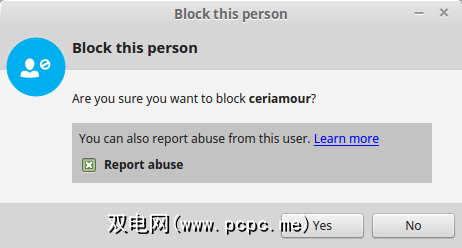 要阻止Skype联系人,可能是因为他们在骚扰您,请选择相应用户旁边的向下箭头,然后选择阻止此用户。将显示一个确认框。单击是继续,尽管您可能首先要选中举报此人的滥用行为框,以将其不当行为通知Skype。