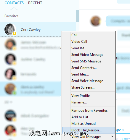 联系人管理是确保Skype安全的重要组成部分,阻止和取消阻止联系人特别简单。要阻止某人,请在您的Skype应用中右键单击其用户名,然后从菜单中选择阻止此人... 。选中从联系人列表中删除框,然后使用阻止按钮进行确认。