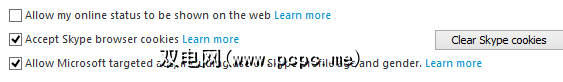 对于那些担心参与Microsoft定向广告网络的人,请确认针对允许Microsoft定向广告的复选框,包括使用Skype个人资料和性别已清除。