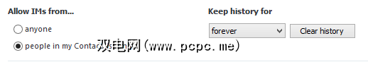 通过找到标记为允许来自的IM 的设置,并选择仅我的联系人列表中的人,可以限制即时消息。