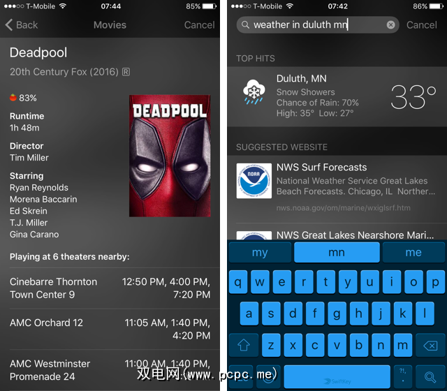 它也可以转换其他单位,例如温度,重量和距离。它可以显示电影时间并获取另一座城市的天气: