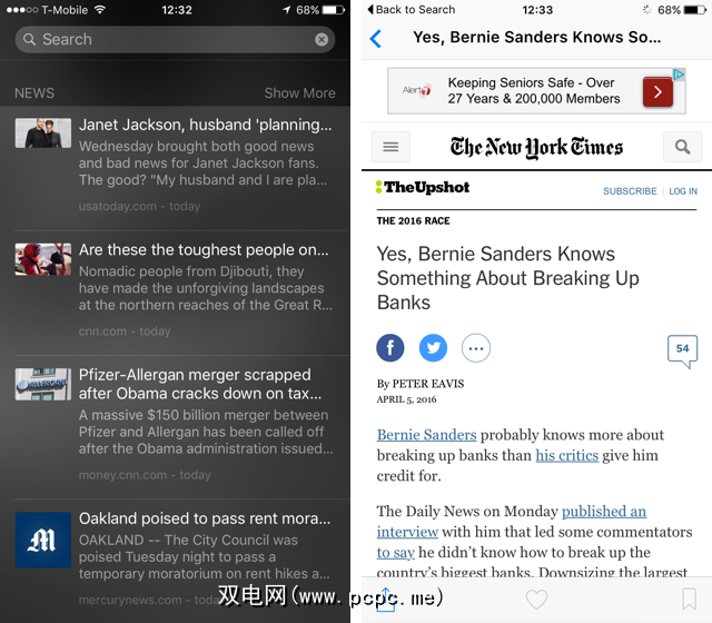 想要在不打开广告的情况下查看最新的头条新闻新闻应用程序?只需跳到Spotlight,您将在新闻应用程序中看到前四个故事(您也可以通过点击 Show More 将其扩展为八个故事)。一键点击,您将被带到“新闻"应用程序中阅读故事。