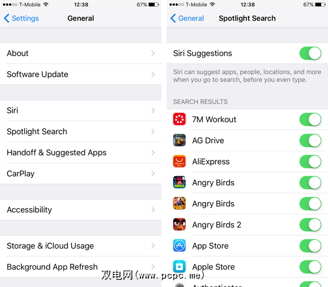 如果您点击显示更多在 Siri建议的右侧,您将获得八个联系人和八个应用程序的列表,Siri会记住您的选择-下次打开Spotlight时,您会看到十六个建议。在应用程序方面,这很有用,因为在第一个主屏幕上可能没有所有八个最常用的应用程序。