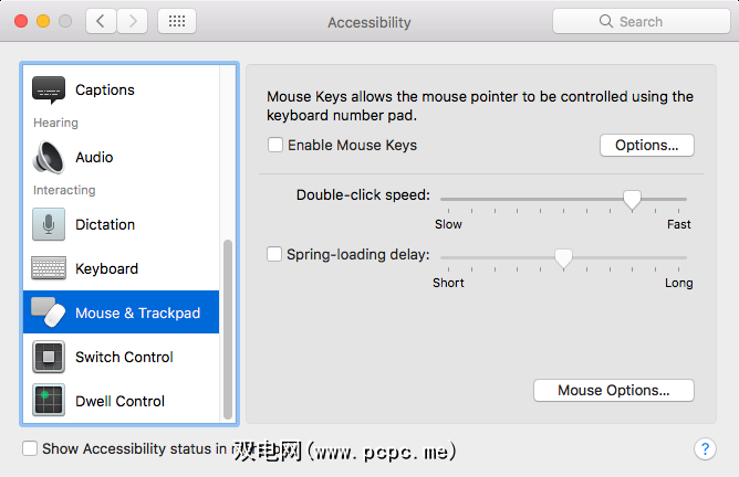 还有另一种无需第三方软件即可调整鼠标设置的方法:系统偏好设置>辅助功能>鼠标和触控板 >。在这里,您可以使用Mac的“鼠标键"功能,该功能允许您使用键盘数字键盘移动光标。