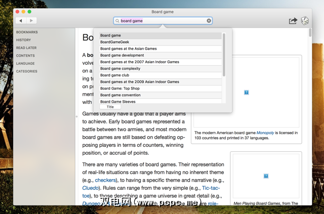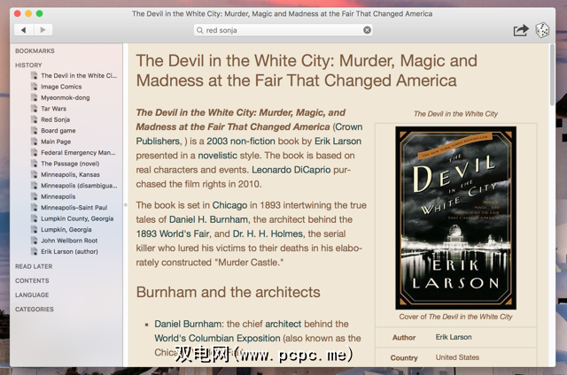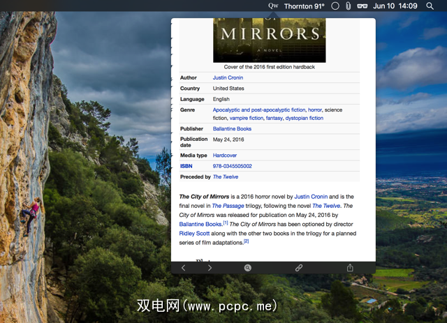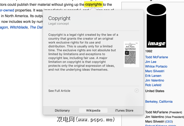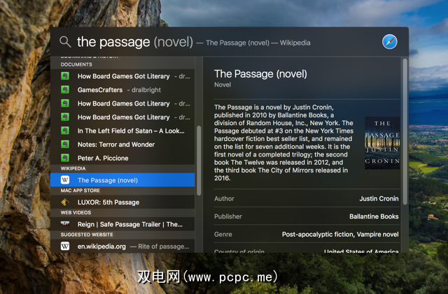 Mac最好的工具之一,Spotlight变得越来越对于OS X的每次更新,它都将更加有用。最新版本可以直接访问Wikipedia,这可以节省大量时间。它仅显示推荐文章的摘录,因此您不会使用它进行任何深入的研究或大量阅读,但是当您希望快速概览主题时非常有用。<