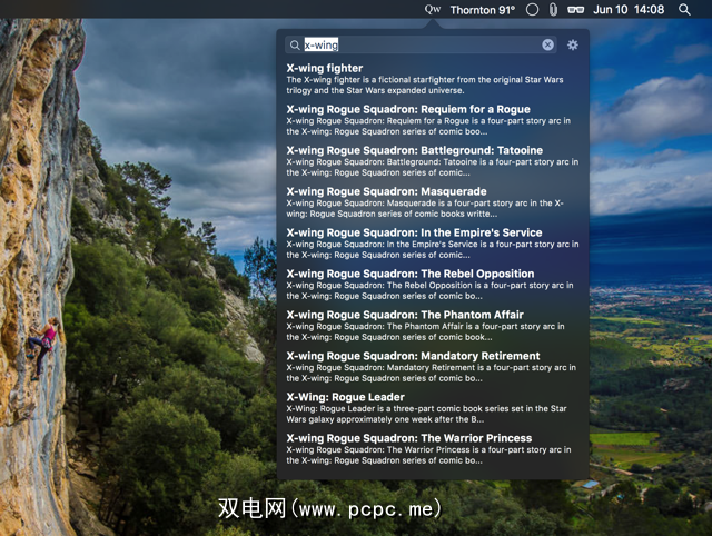 尽管这两个应用程序都不是在特别考虑到Wikipedia的情况下创建的,Alfred和Quicksilver在这里都值得一提,因为它们都可以在网上搜索并快速地从Wikipedia中获取所需的信息。例如,在Quicksilver中,您只需键入“ wikipedia [您的搜索词]"即可搜索Wikipedia。