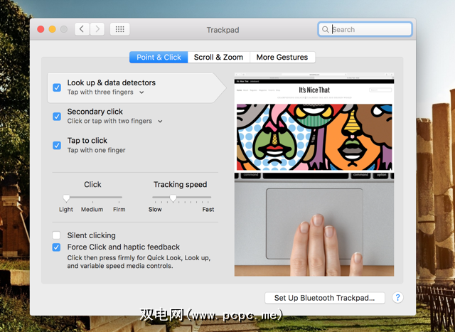 MacBook上的触控板具有许多很棒的功能,这些功能起初并不明显。例如,如果您在系统偏好设置>触控板中启用了查找和数据检测器,则可以用一个手指强行单击一个单词,或用三个手指轻按以打开该单词查找对话框,其中将显示词典定义,Wikipedia条目和可能的第三项,具体取决于您选择的单词。