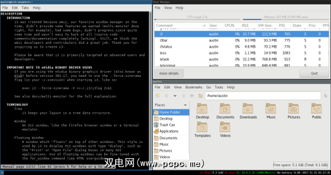 例如,开箱即用,您将没有任何类型的桌面面板或应用程序底座。这意味着没有系统时钟或电池图标之类的东西。相反,您需要依靠单独的程序来完成这项工作。桌面环境默认情况下包括这些种类的东西。使用窗口管理器意味着您必须从头开始混合和匹配所需的系统部分。