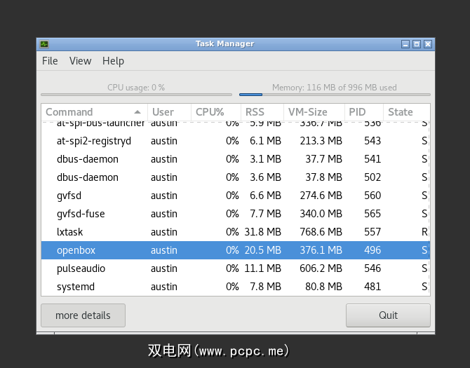 相反,许多窗口管理器本身非常轻巧,占用的空间很小。例如,Openbox仅需要运行较大的桌面环境的一小部分。
