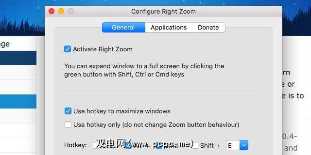 When you open Right Zoom for the first time, its settings window pops up, prompting you to configure and activate the app. You have the option to set up a hotkey for the maximize function and enable Right Zoom for select applications.