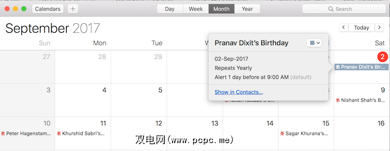 3。在macOS中将事件添加到日历,将详细信息添加到联系人