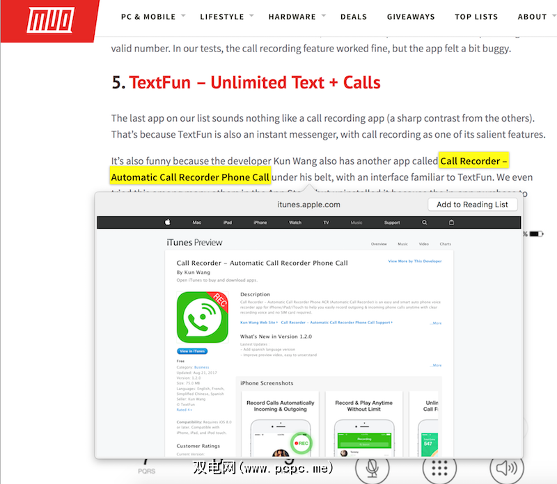 4。 Safari中的超链接预览