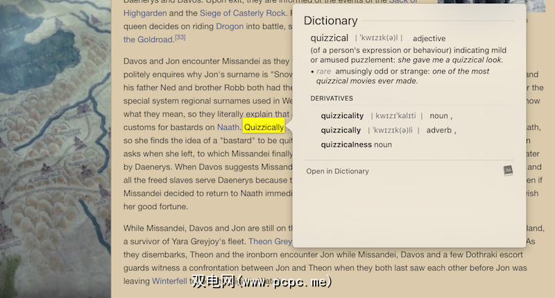 这是macOS内置的非常漂亮的工具。突出显示任何单词或多个单词,右键单击并选择查找。根据您突出显示的内容,“查找"将显示上下文信息,例如通过“词典"应用突出显示的单词的含义。相关时,它还会使用其他来源,例如Wikipedia,Twitter和Apple Maps。