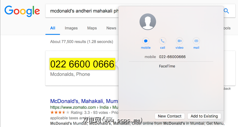 用力按下这种文本使用Force Touch触控板可以打开类似的日历小部件。以我的经验,该功能通常不会比日期更抢手。在电话号码或电子邮件地址上执行相同操作更可靠。您可以快速将号码添加到联系人,如果启用了iPhone和Continuity,甚至可以直接从Mac拨打电话。