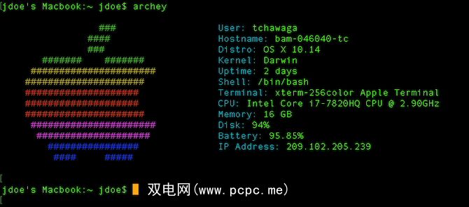 您是否曾经想展示现代系统的迅捷速度并将其与怀旧的氛围进行对比? archey 在这里为您提供帮助。这个可爱的单功能应用程序将在终端中基于文本的复古风格Apple图标旁边显示您的系统信息。这只是在Mac上复古外观的一种有趣方式。