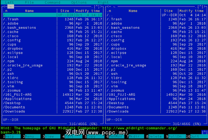 Midnight-commander允许您使用单击或键盘箭头搜索目录结构。您可以将右侧的目录与左侧的目录进行比较,以快速了解文件大小,目录结构等。