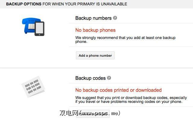 设置2FA后,Google提供了一组备份代码。如果您的主要身份验证设备不可用,并且您没有备用电话备案,那么检索Google帐户将是一场噩梦。发生这种情况时,您将无法收到验证码。