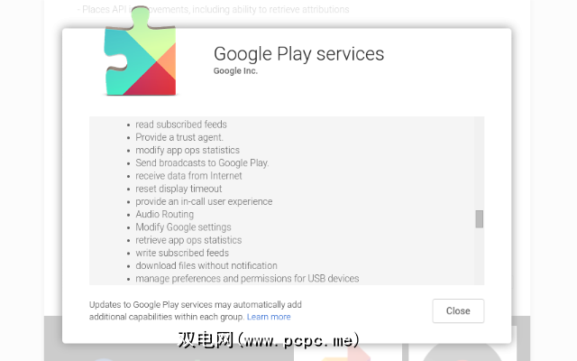 好吧,花点时间转到Google Play服务Play商店页面并查看所需权限列表。您可能以前没有做过此操作,因为后台服务已预装在大多数设备上,并且通常仅在崩溃时引起注意。无论如何,请注意您是如何授予几乎所有权限的。