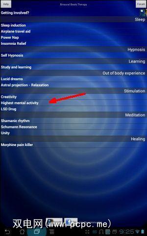 一旦我设定了在正常能力和专注水平下玩游戏的基本得分,便进入房间,关上门,然后推出了一款名为Binaural Beat Therapy的Android双耳节拍应用。此应用程序提供“最高智力活动"的频率设置。