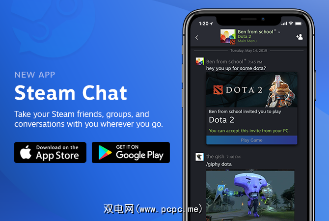 Steam Chat应用程序在Steam博客。该公司称其为“可在iOS和Android平台上免费获得的现代化Steam聊天体验。"的标语是“随处携带您的Steam朋友,群组和对话。"