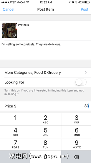 首先,您需要选择要出售商品的照片。从那里给它一个标题,写一个简短的描述,选择正确的类别,然后输入价格。将价格保留为空白会将其设置为“提出要约",并输入0作为价格使其免费。点击发布,您将一路顺风。